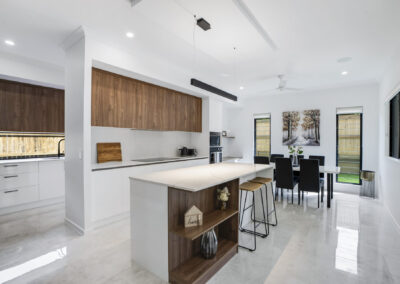 This architecturally designed 4-bedroom home features a modern open-plan layout, premium inclusions, and a full turnkey finish — perfect for a growing family. Thoughtfully built across multiple levels, the design makes full use of the land’s natural fall and optimises the northern elevation for natural light and energy efficiency. The owners were able to achieve a high-end finish while staying within budget, resulting in a home that blends practicality with striking design.