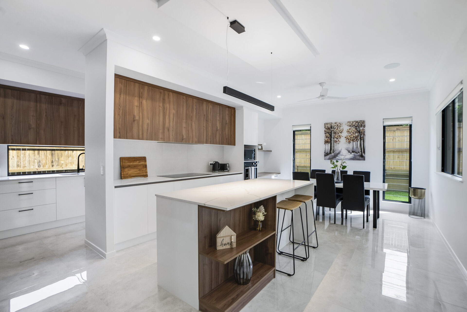 This architecturally designed 4-bedroom home features a modern open-plan layout, premium inclusions, and a full turnkey finish — perfect for a growing family. Thoughtfully built across multiple levels, the design makes full use of the land’s natural fall and optimises the northern elevation for natural light and energy efficiency. The owners were able to achieve a high-end finish while staying within budget, resulting in a home that blends practicality with striking design.